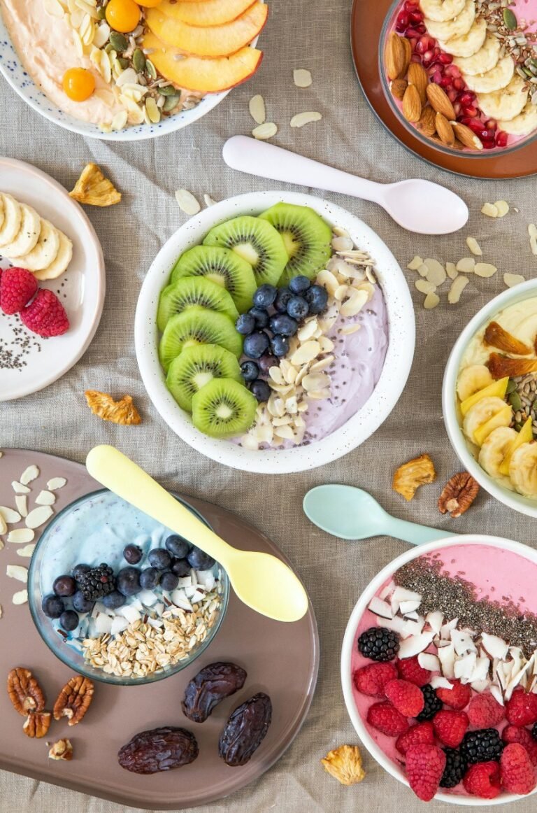 Wholesome bowls made with fresh fruits, superfoods, and almond milk healthy, delicious, and full of love.